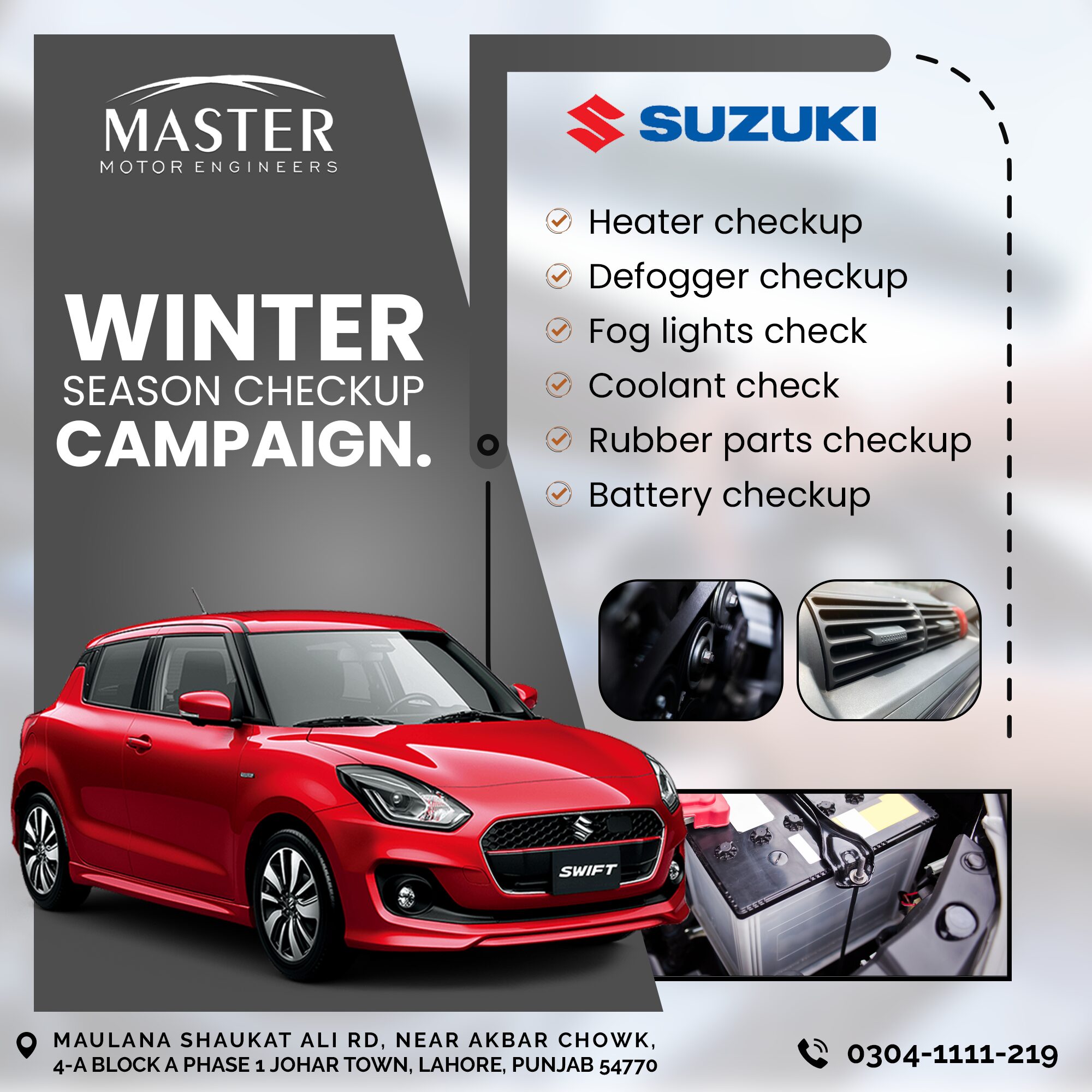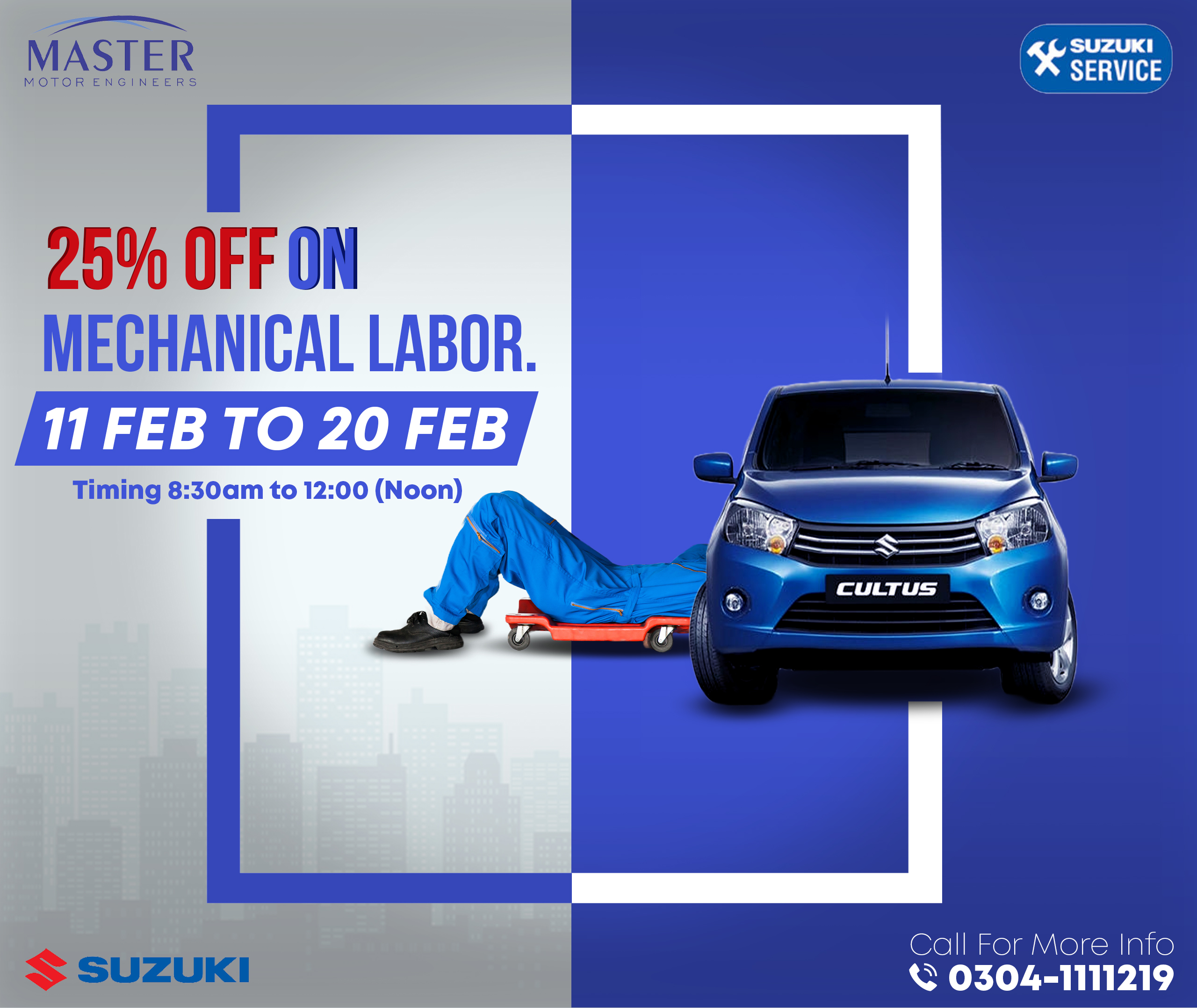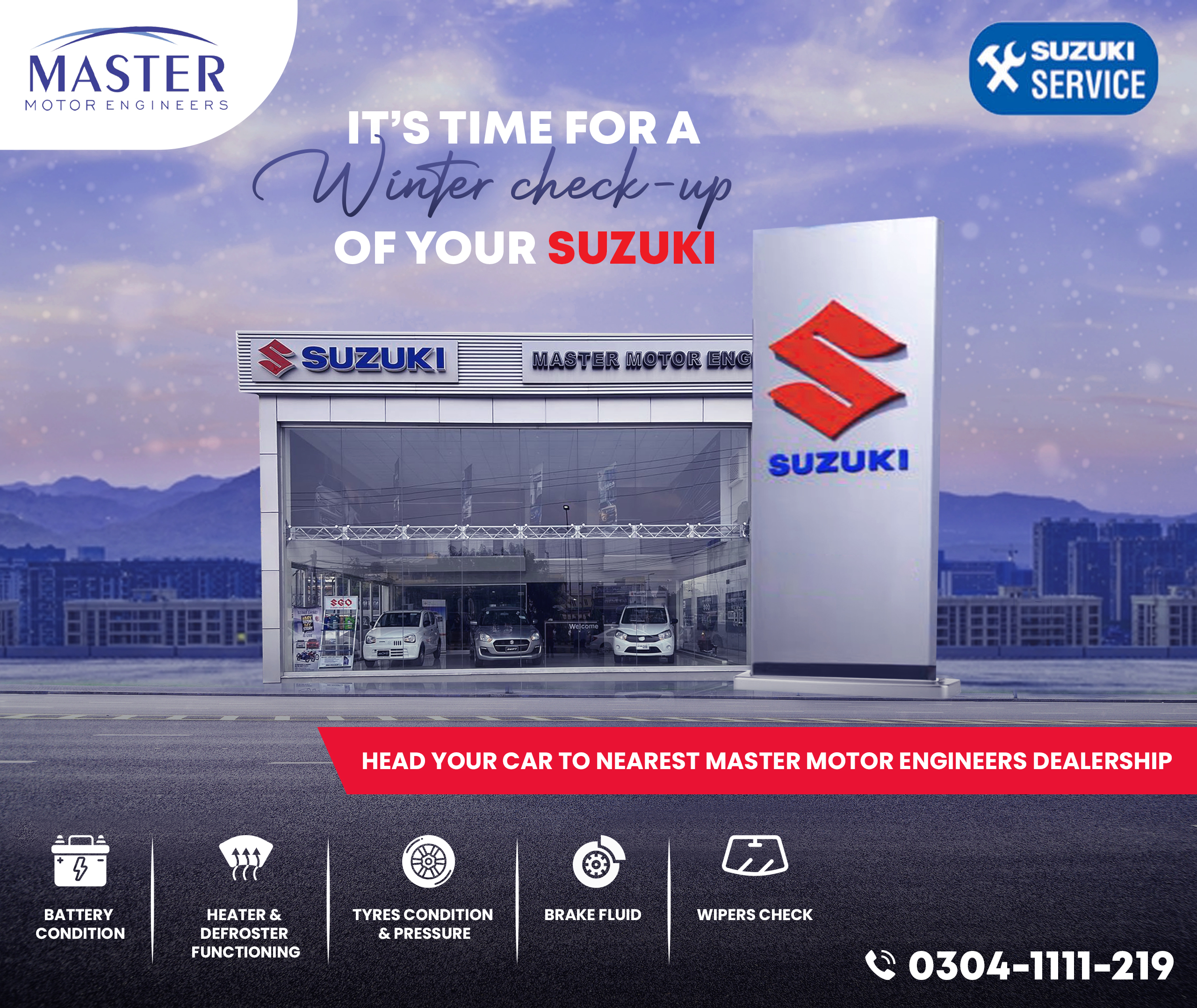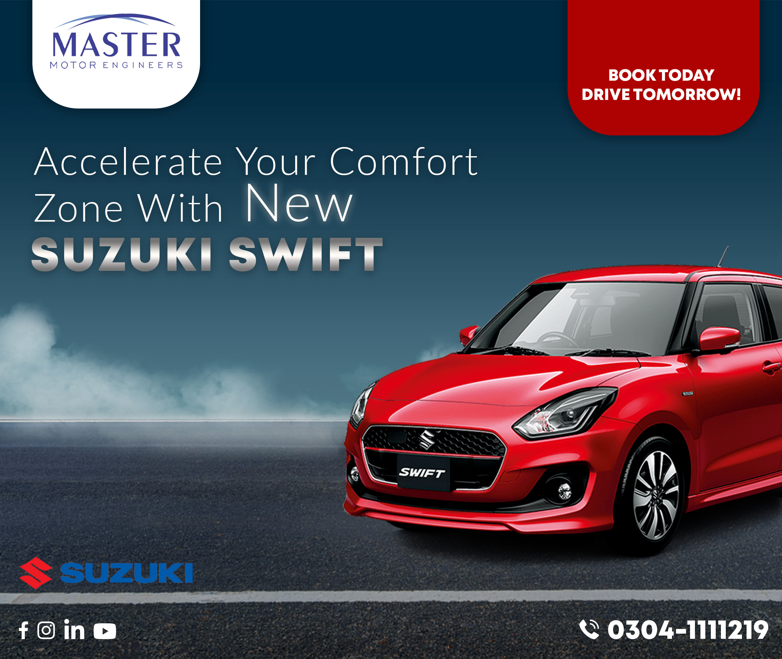 Social media engaged users with interactive new car launches and customer-oriented offers during the season. With the new Suzuki models, after-sales services, and promotional offers, plus, season promotional social media graphics and customer satisfaction, the dealership Master Motor Engineers needed designs that were professional and visually pleasing.