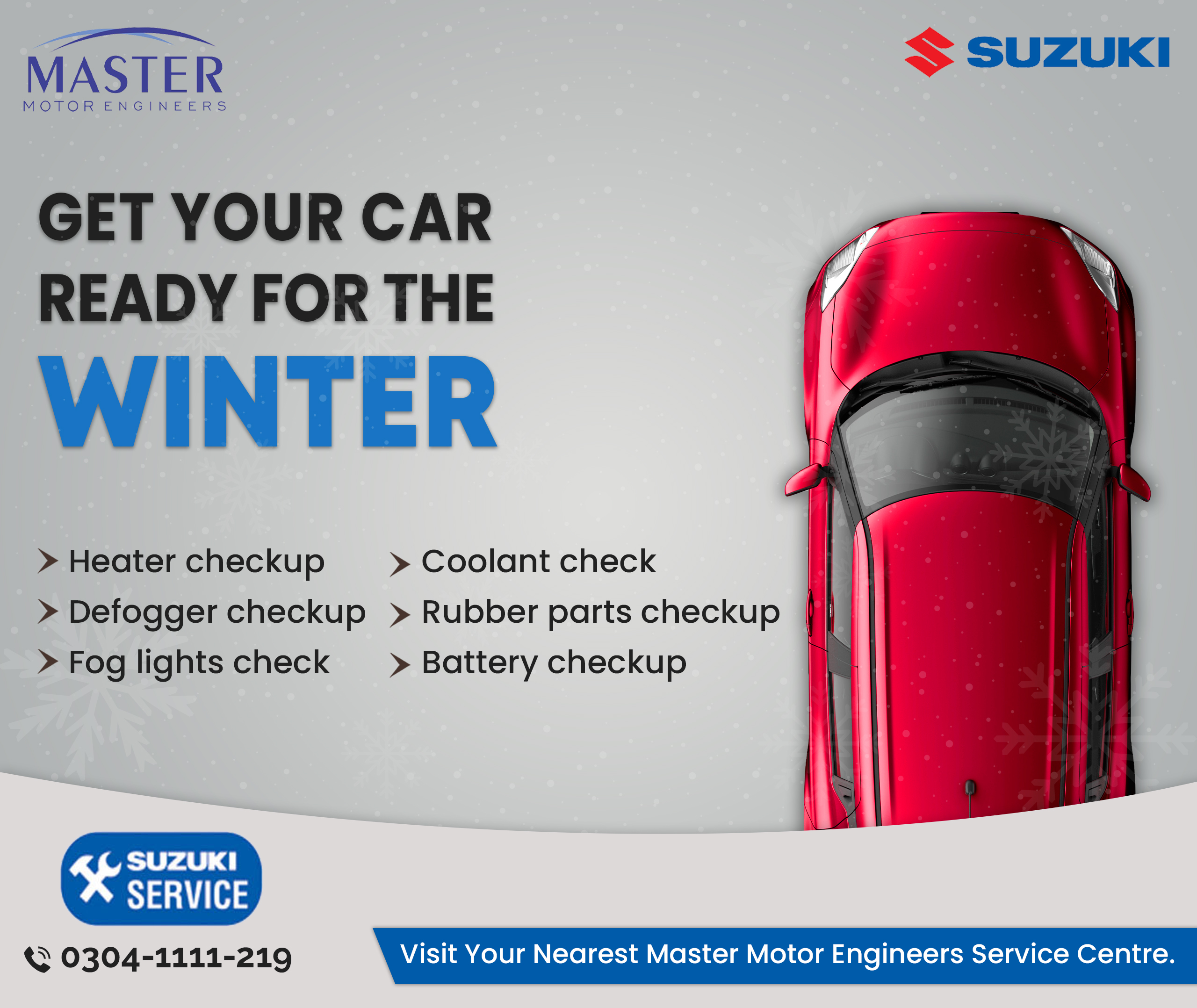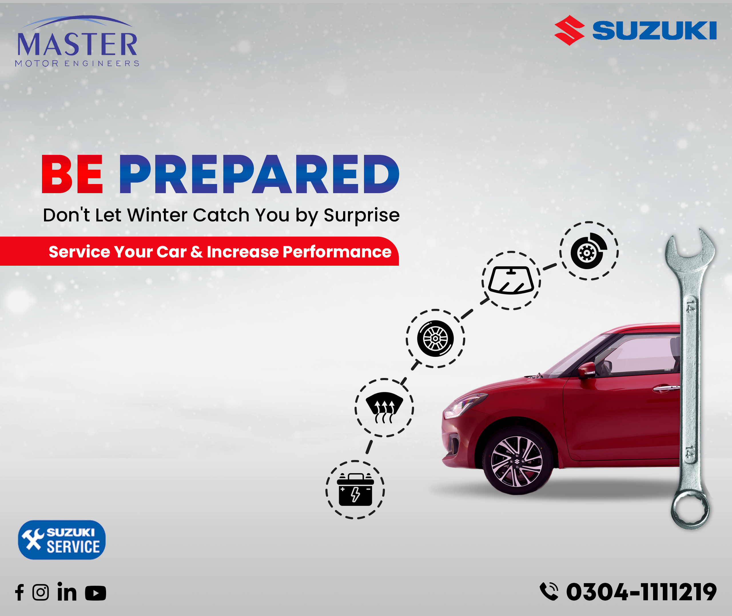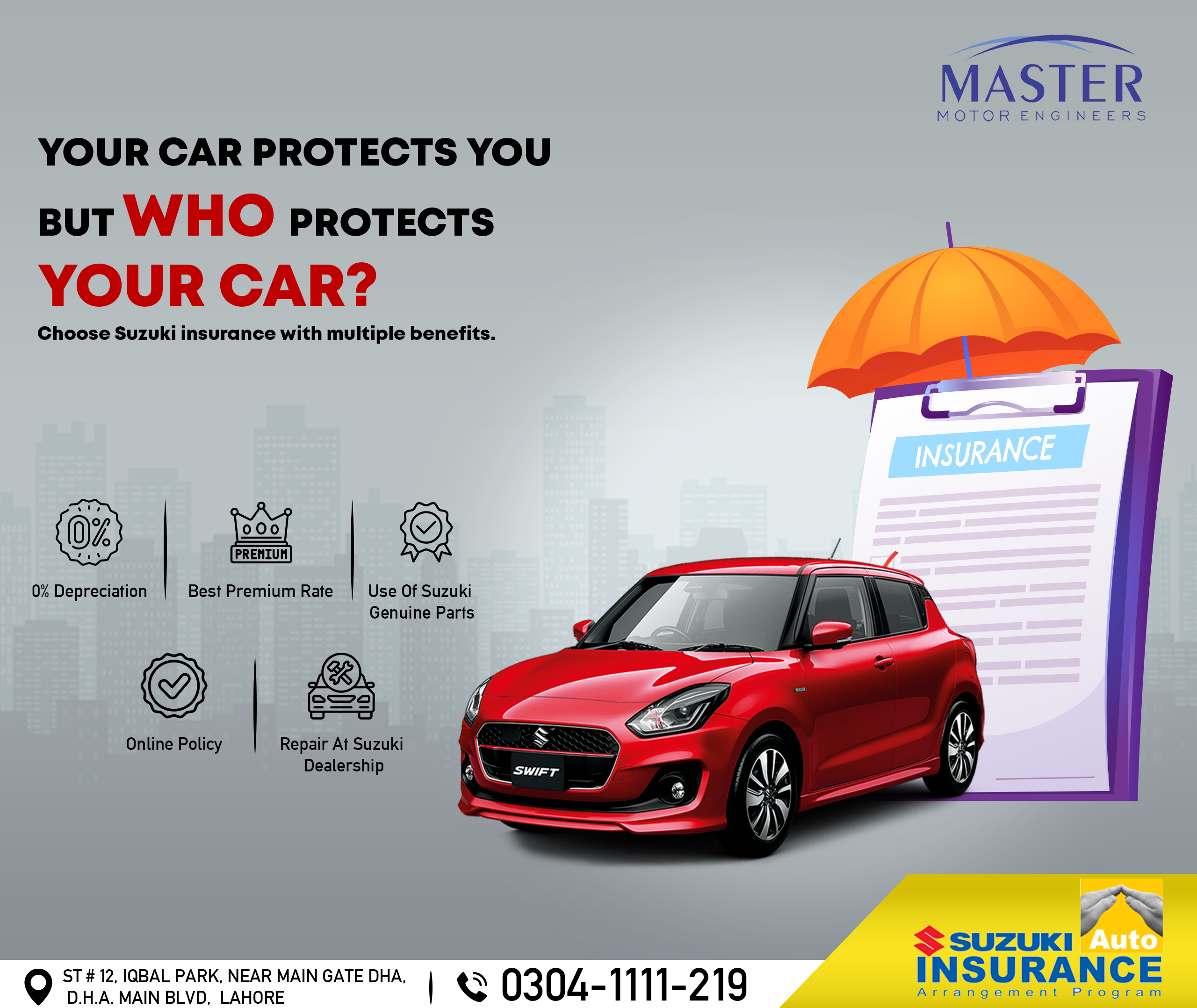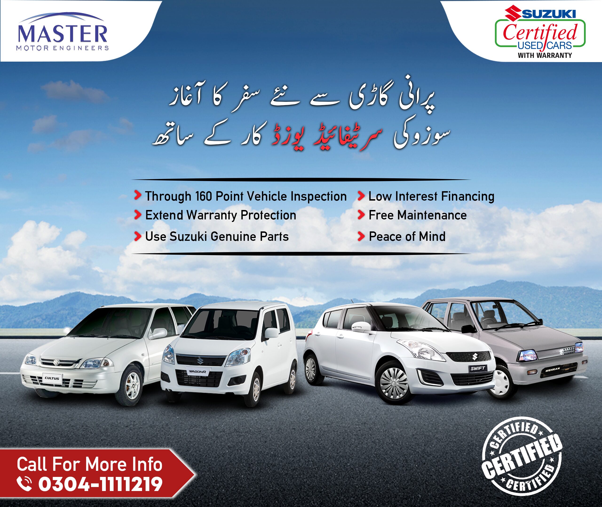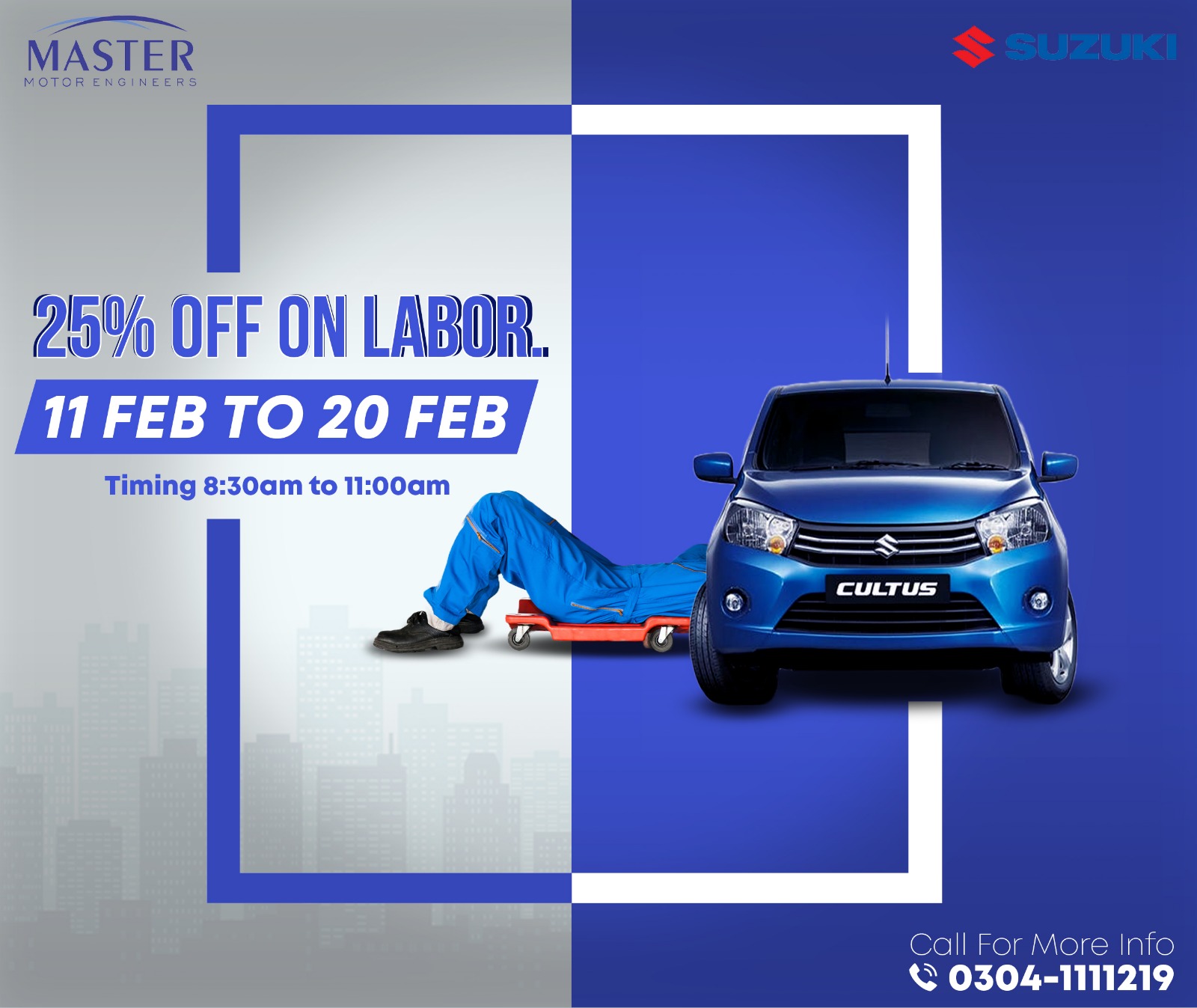 Social media engaged users with interactive new car launches and customer-oriented offers during the season. With the new Suzuki models, after-sales services, and promotional offers, plus, season promotional social media graphics and customer satisfaction, the dealership Master Motor Engineers needed designs that were professional and visually pleasing.