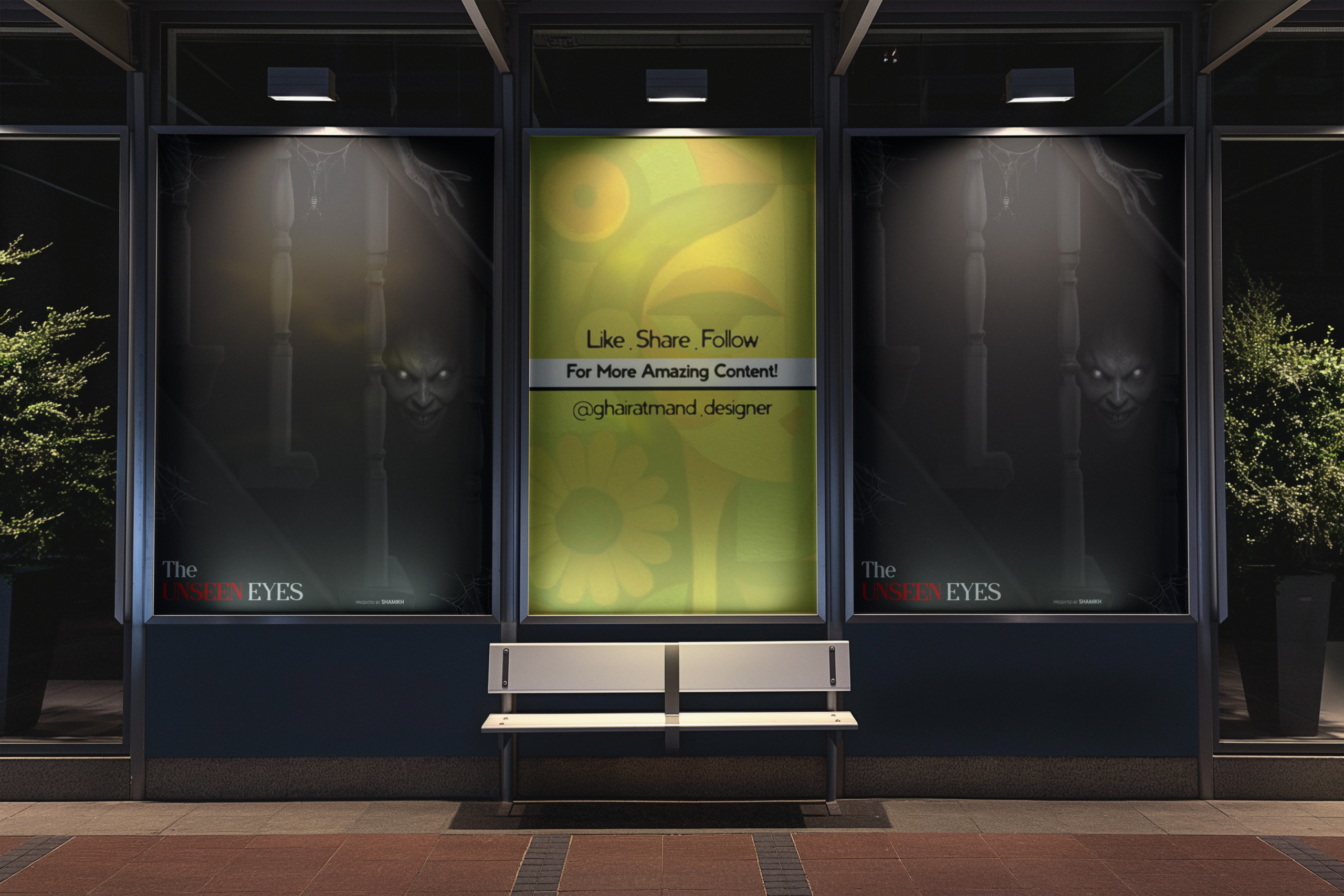 This project demonstrates my approach to conceptual design: combining technical skill with creative storytelling to create work that is visually compelling, emotionally engaging, and atmospherically rich. “The Unseen Eyes” is not just a poster; it is an exploration of fear, perception, and the power of suggestion in visual art.
